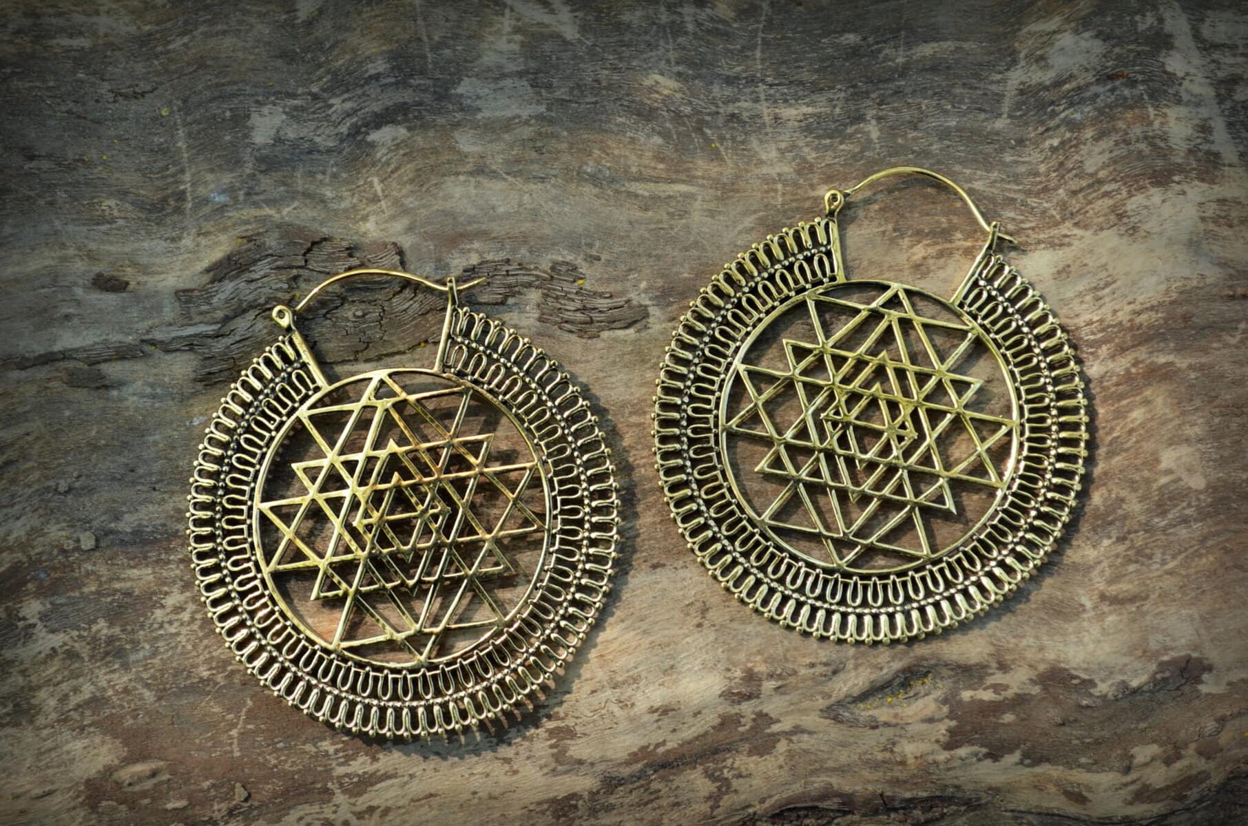 Traumhafte Creolen mit Shri Yantra Symbol.