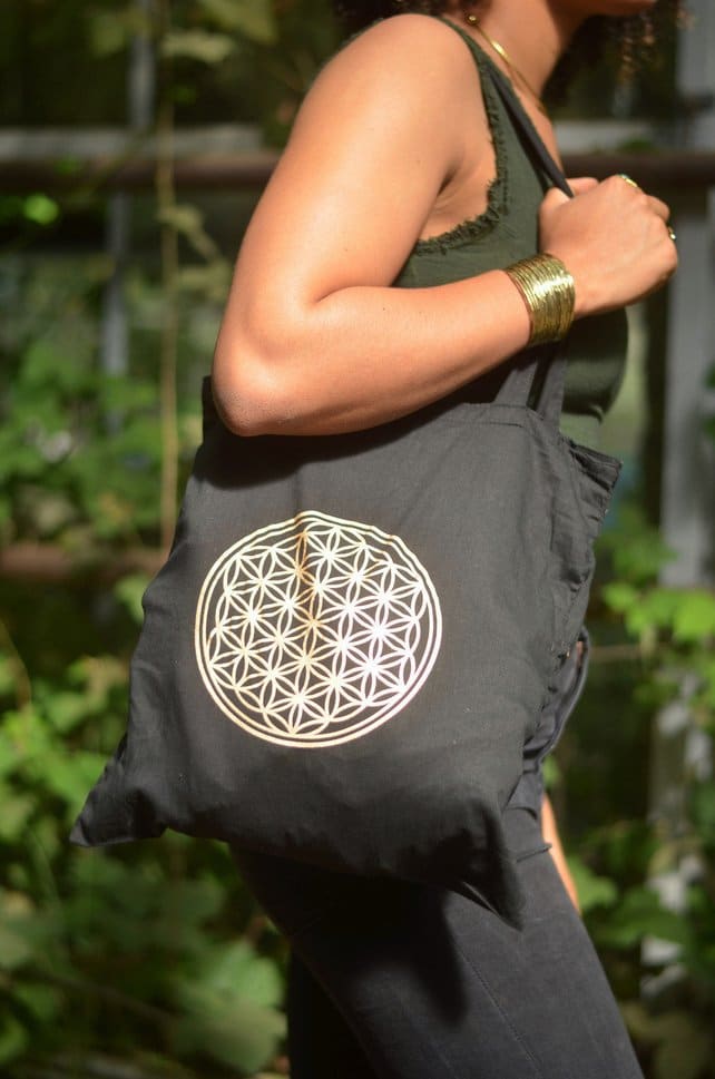 Die Tasche ist beidseitig mit Gold-Druck verziert.