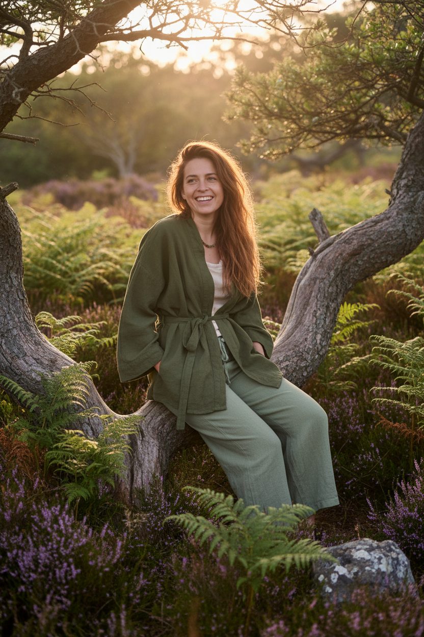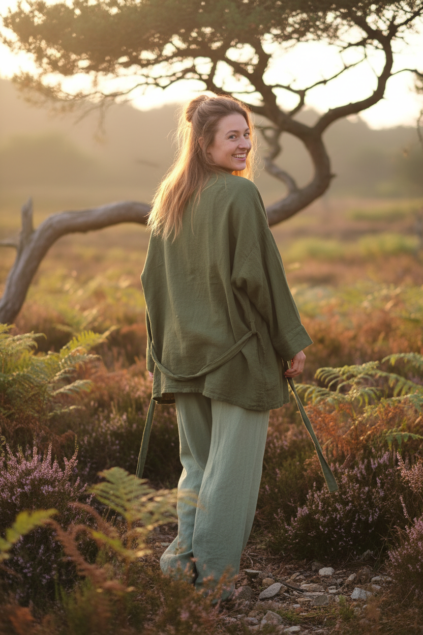 Entdecke die schlichte Kimono Jacke aus natürlicher Rohbaumwolle in einem zarten Salbei Pastellton und lass dich von ihrer Leichtigkeit verzaubern. Diese Jacke ist mehr als nur ein Kleidungsstück – sie ist ein treuer Begleiter in deinem Alltag, der dir Freiheit und Stil zugleich schenkt. Die weiche Rohbaumwolle verleiht der Jacke eine einzigartige, natürliche Struktur, die nicht nur gut aussieht, sondern auch dafür sorgt, dass deine Haut atmen kann.