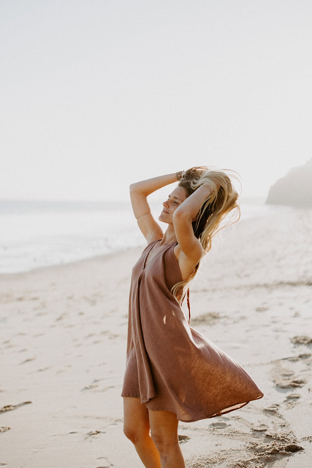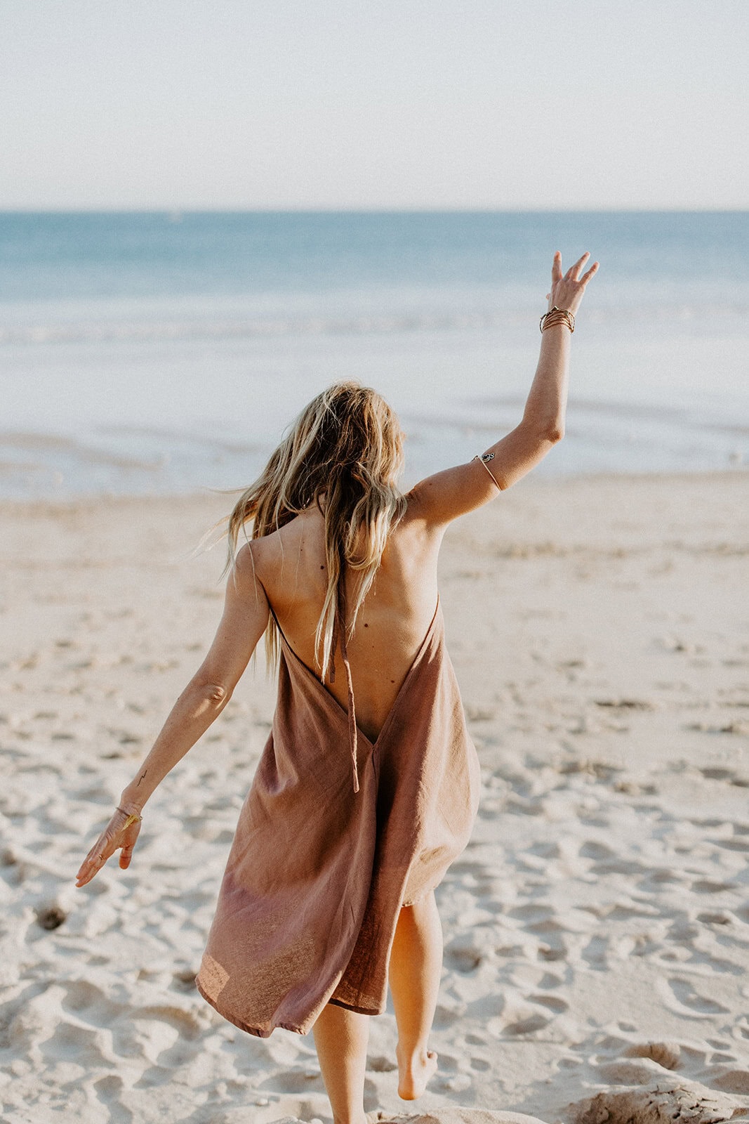 Dieses traumhafte Kurzkleid ist aus Baumwolle. Es lässt sich wie ein Neckholder binden. Im Rücken fällt es mit einem tiefen Ausschnitt, denn auch ein hübscher Rücken kann entzücken.