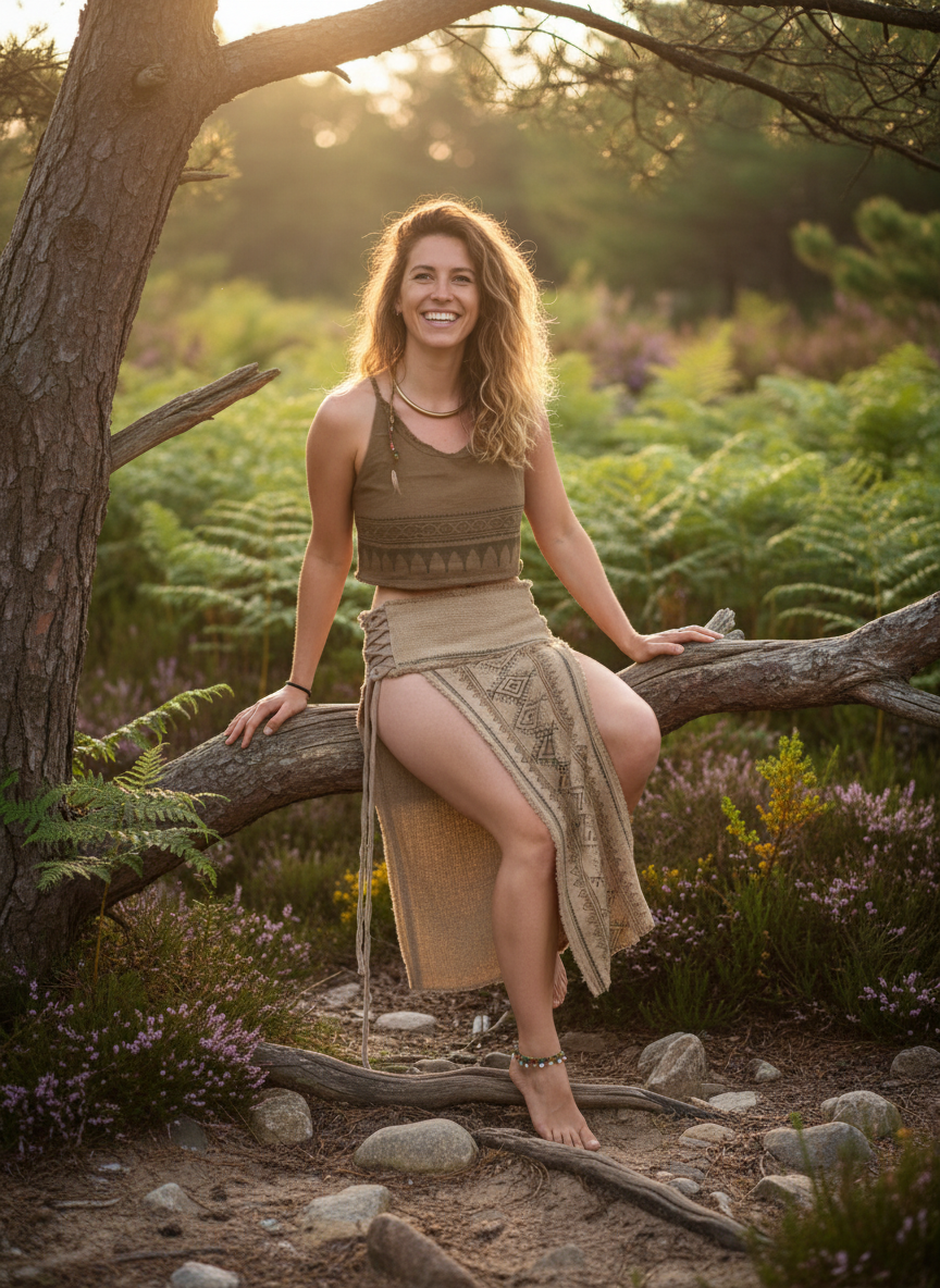 Aus hochwertiger handgewebter Baumwolle hergestellt und mit handgearbeitem Blockprint Muster verziert. Der Bund lässt sich über Schnüre in die gewünschte Passform bringen. Die Seiten sind offen.
