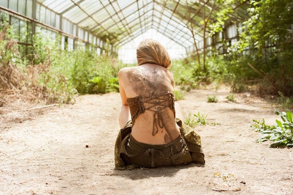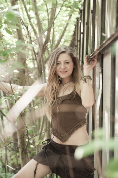 Das Oberteil wird umspielt von fransig fallenden Aufnäharbeiten.