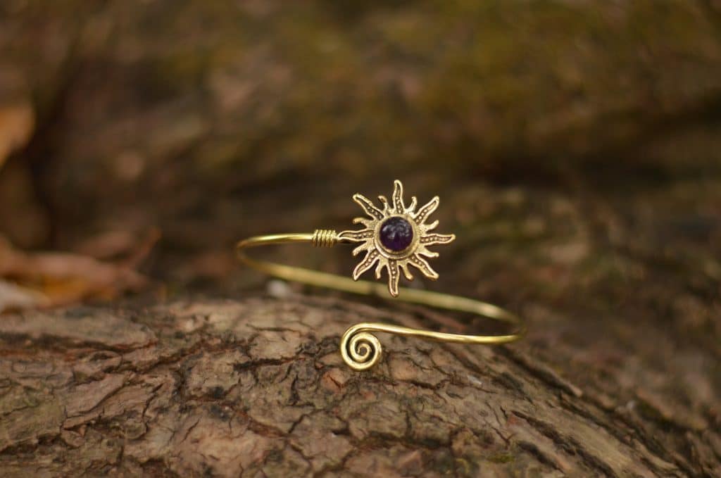 Verspielter Armreif mit filigranen Sonnen-Muster.