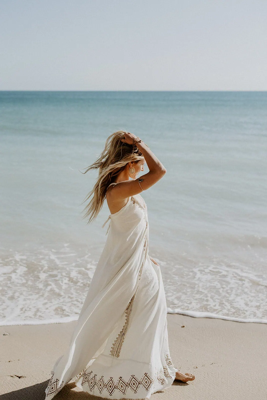 Das Maxikleid hat einen verspielten Boho-Look, der an die Tiefen der Natur angelehnt ist. Du kannst es toll im Alltag tragen, aber auch bei besonderen Anlässen und Familienfeiern.
