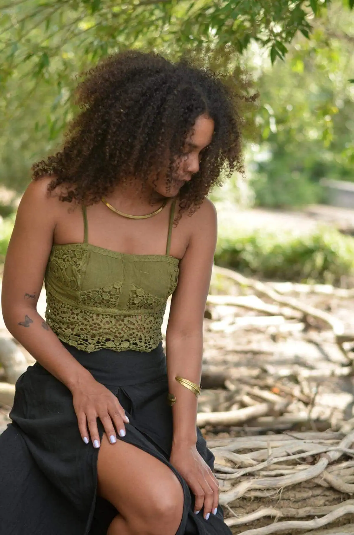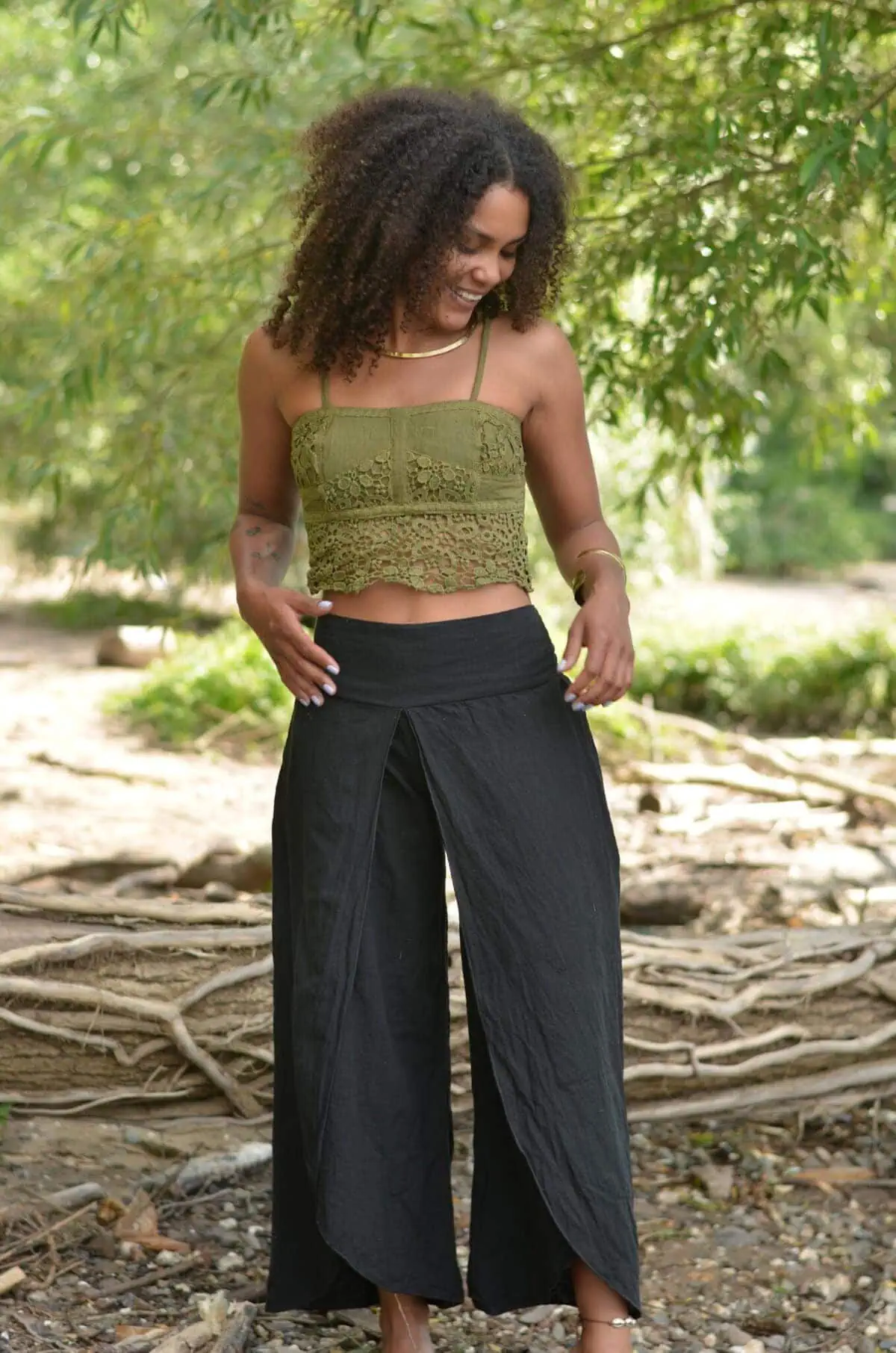 Das Crop Top hat durch den Netz-Mix einen schönen Lagenlook und macht sich toll zu Röcken und Hosen im Naturlook.