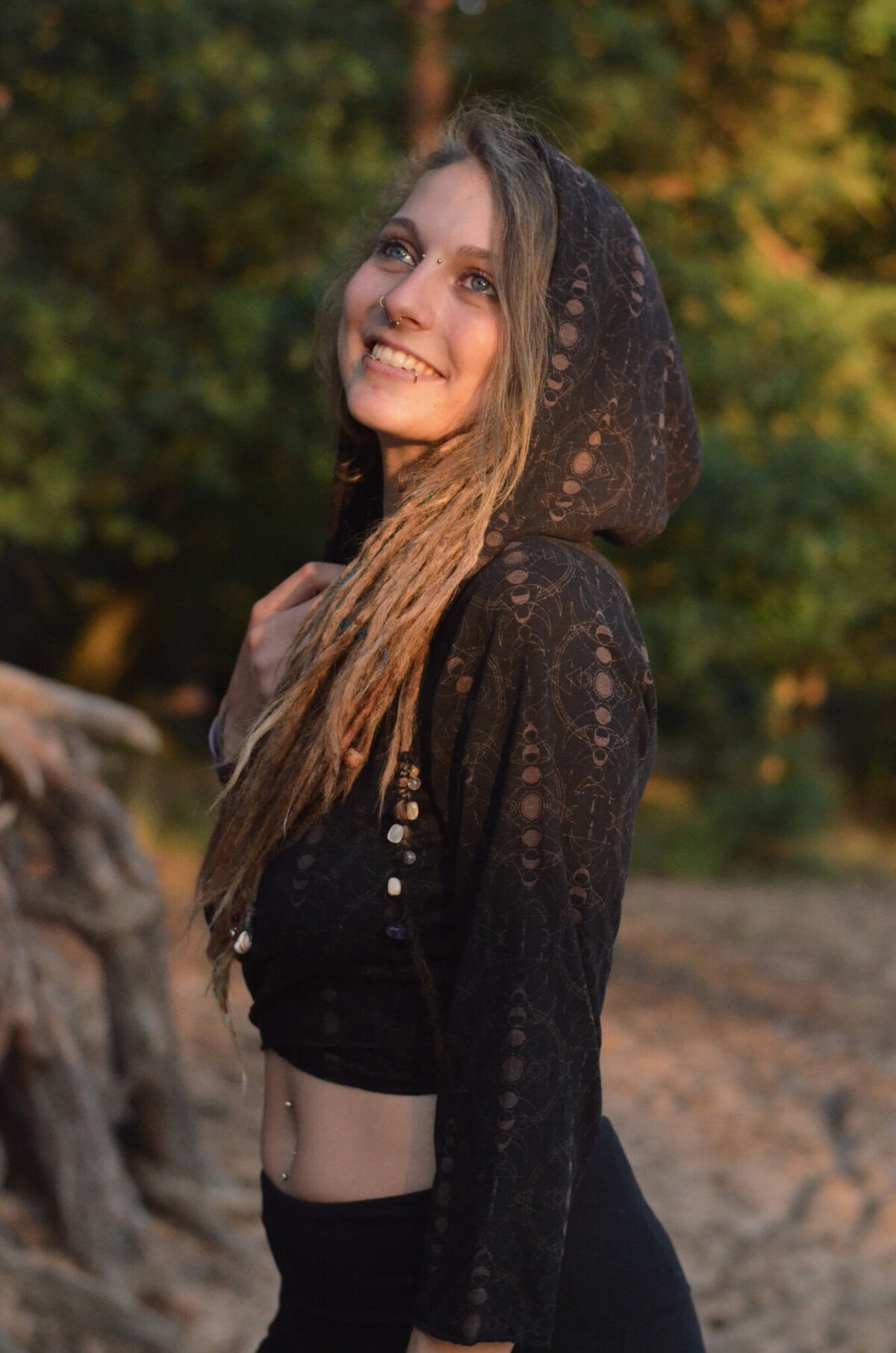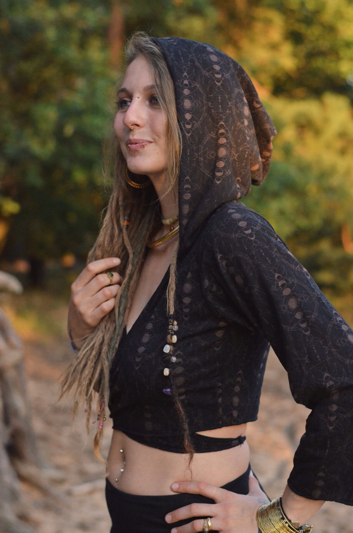 Die verschiedenen Phasen des Mondes spiegeln die unterschiedlichen Aspekte der Weiblichkeit wider – von der Neumond-Introspektion über die Fülle des Vollmonds bis hin zur Transformation im abnehmenden Mond. Dieses Knoten-Top lädt dich ein, dich mit deinem eigenen Zyklus zu verbinden und damit deine innere Göttin zu zelebrieren.