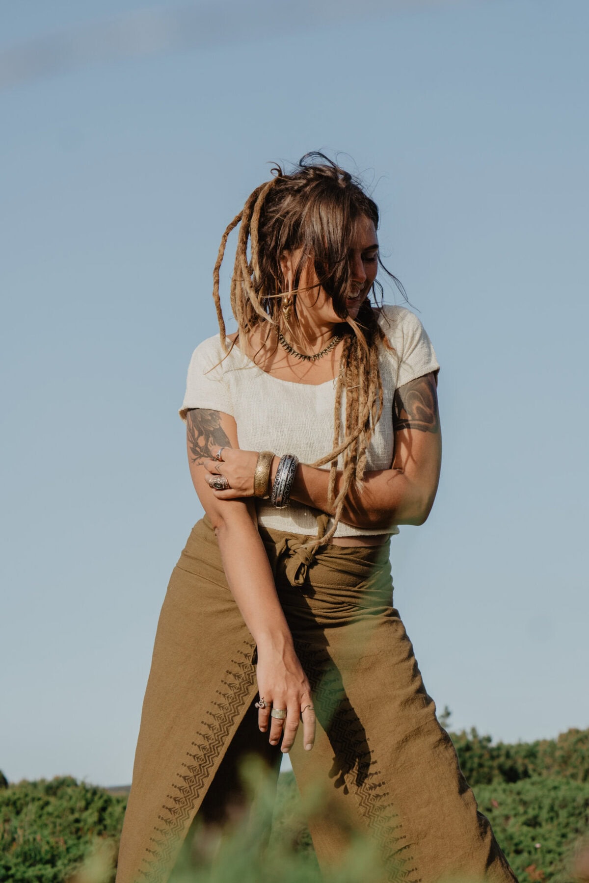 Das Top fällt bauchfrei und lässt sich so toll im Lagenlook kombinieren. Die feine Struktur des Stoffs macht das Oberteil zu einem absoluten Hingucker.