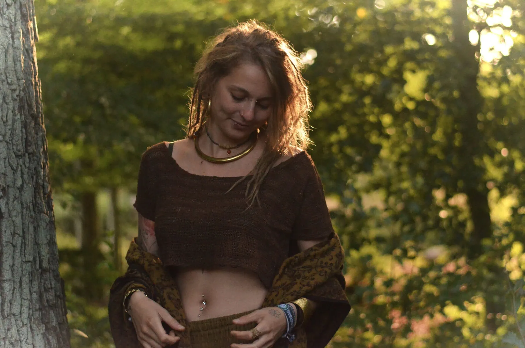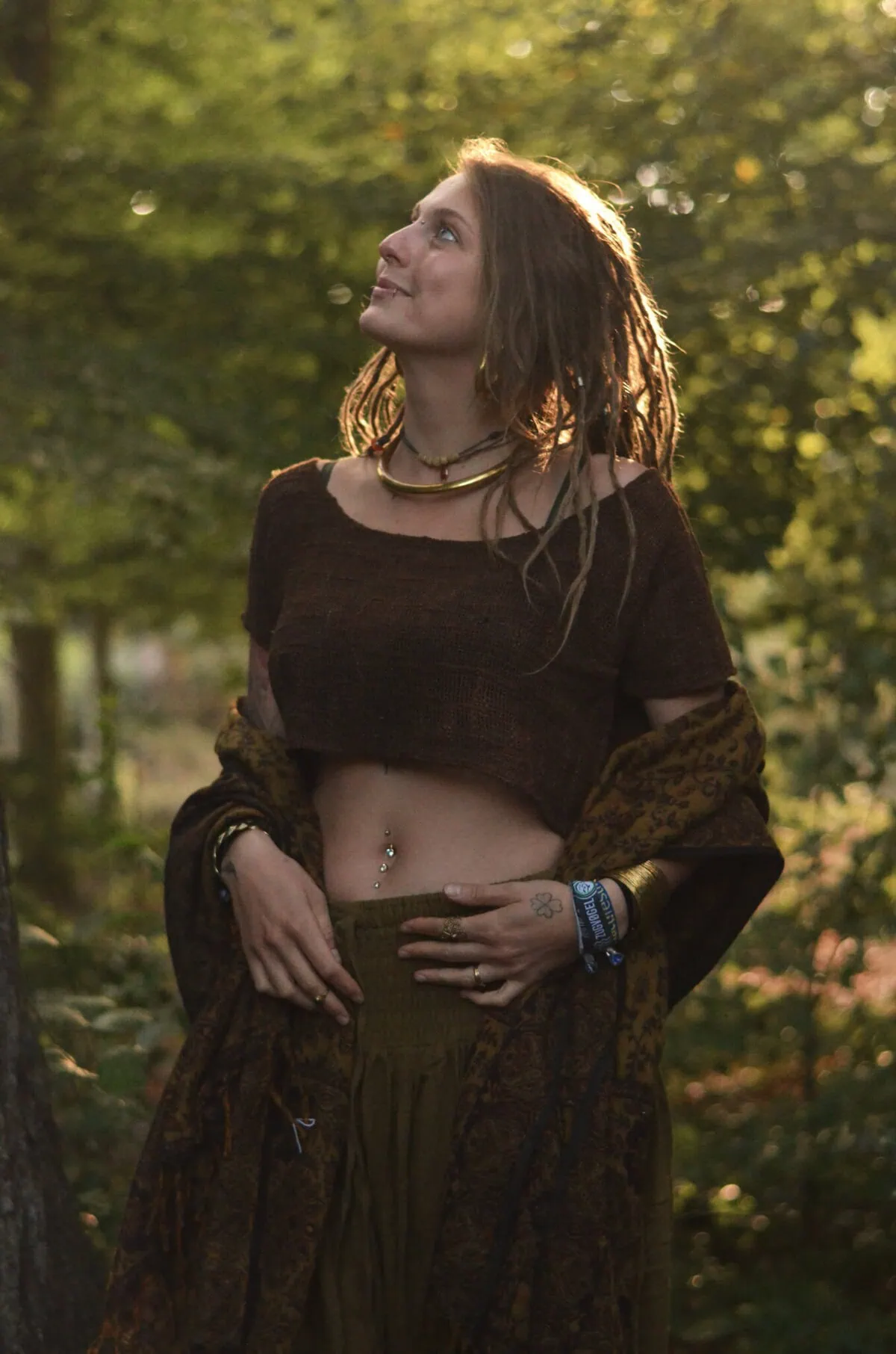 Das Top fällt bauchfrei und lässt sich so toll im Lagenlook kombinieren. Die feine Struktur des Stoffs macht das Oberteil zu einem absoluten Hingucker.