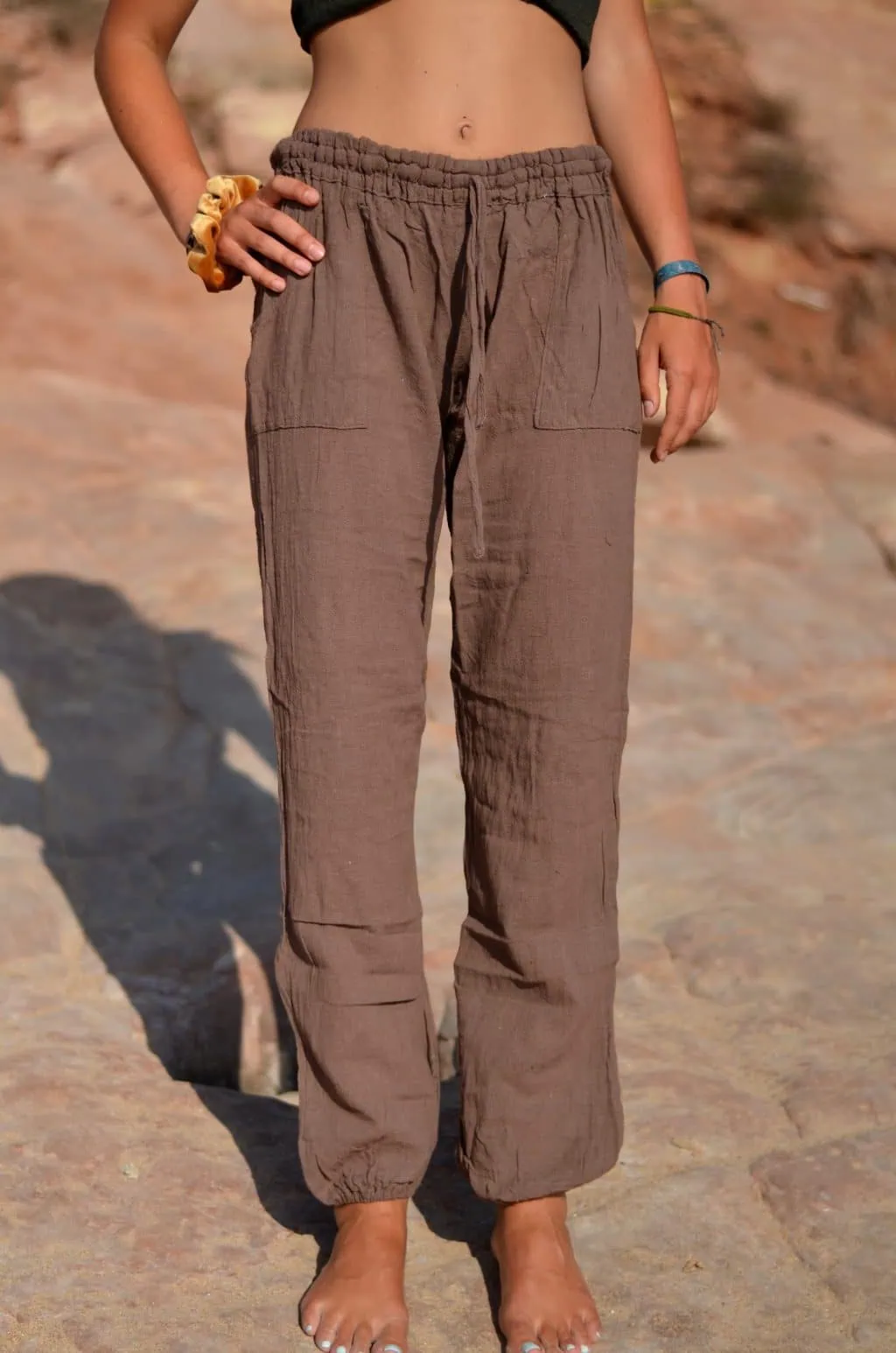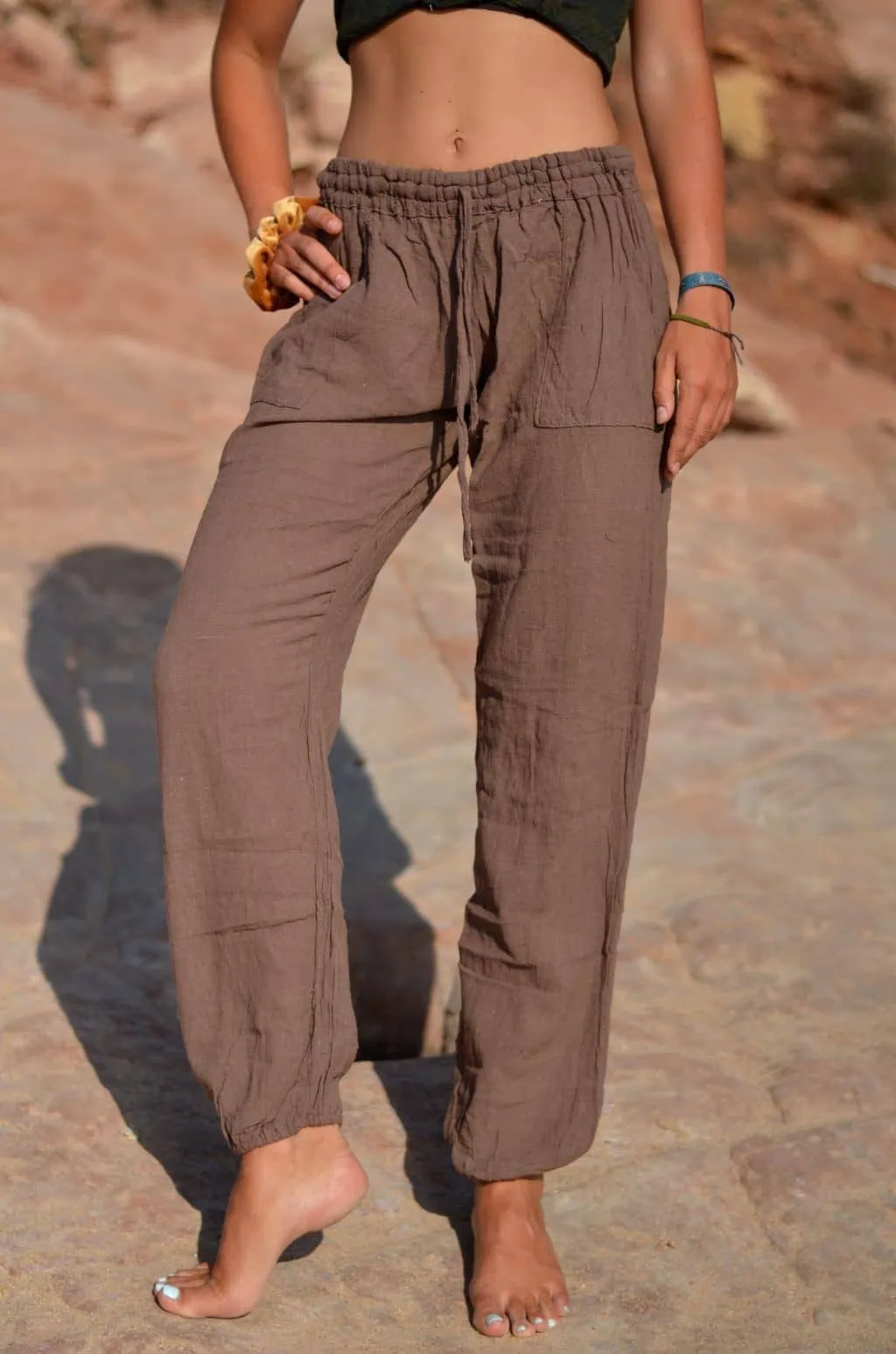 Die Hose ist super gemütlich und fällt luftig. Aus hangewebten Baumwoll-Stoff. Sie passt sich wunderbar an.