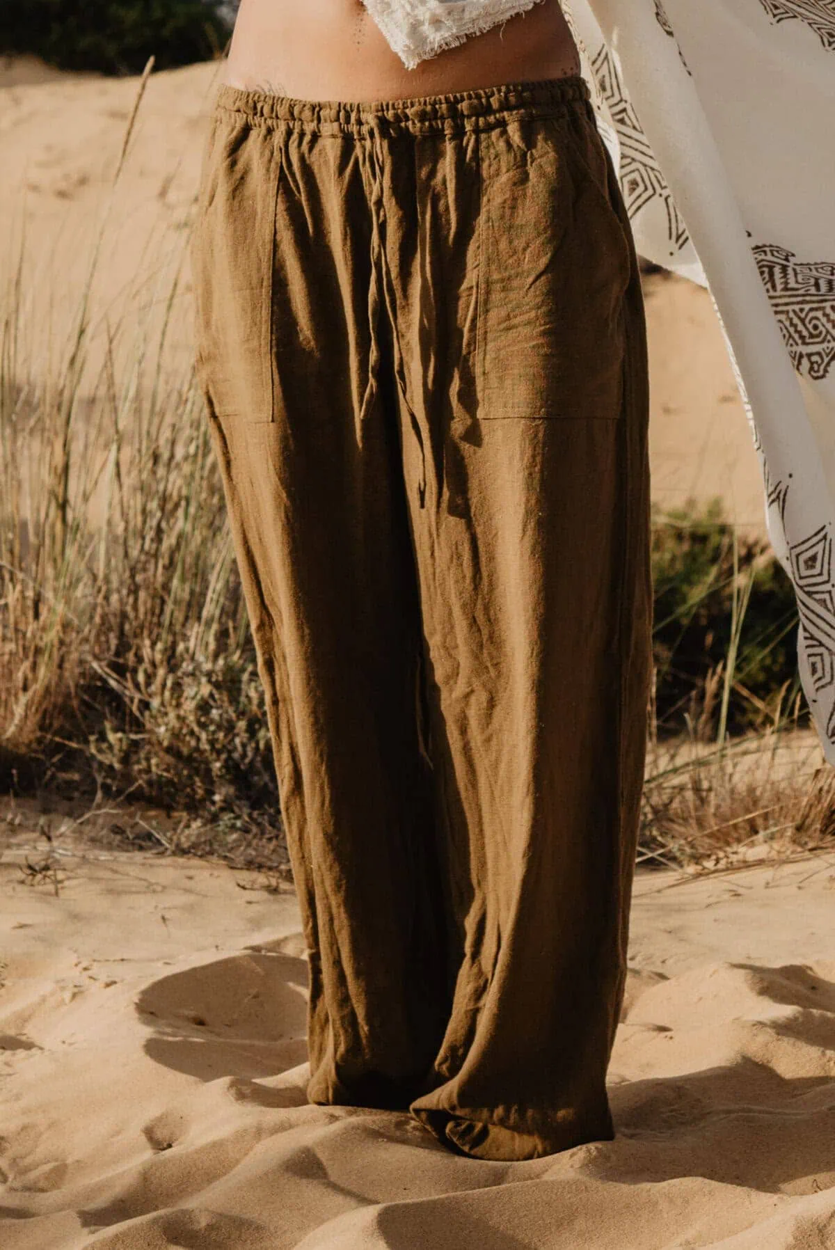 Die Hose ist super gemütlich und fällt luftig. Aus hangewebten Baumwoll-Stoff. Sie passt sich wunderbar an.