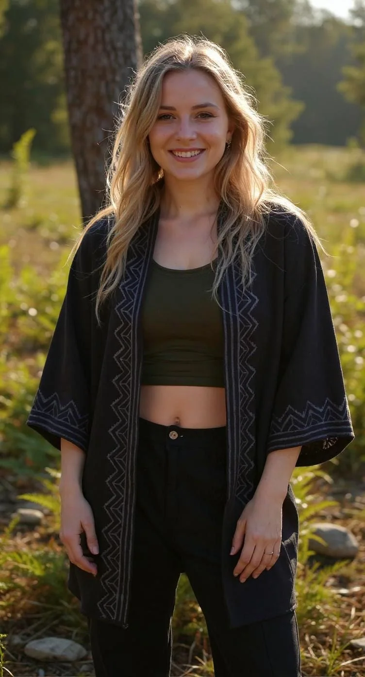 Die sanften, erdigen Farben und der luftige Schnitt machen die Kimono Jacke zum idealen Accessoire für verschiedene Anlässe. Ob du einen entspannten Tag im Park verbringst, durch die Stadt schlenderst oder dich mit Freunden im Café triffst – diese Jacke lässt sich mühelos in deinen persönlichen Stil integrieren. Kombiniere sie im lässigen Hippielook mit einer weit geschnittenen Hose oder genieße den luftigen Boho-Look mit einem fließenden Kleid.