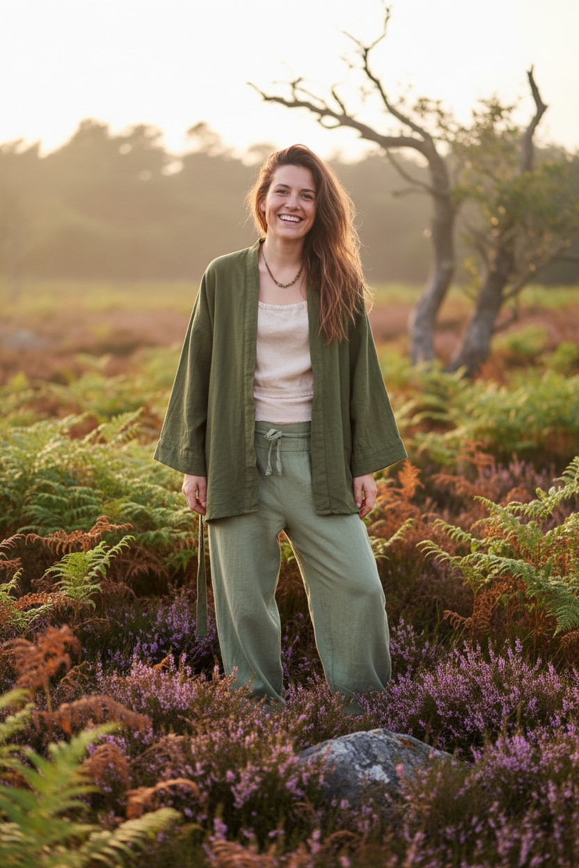 Entdecke die schlichte Kimono Jacke aus natürlicher Rohbaumwolle in einem zarten Salbei Pastellton und lass dich von ihrer Leichtigkeit verzaubern. Diese Jacke ist mehr als nur ein Kleidungsstück – sie ist ein treuer Begleiter in deinem Alltag, der dir Freiheit und Stil zugleich schenkt. Die weiche Rohbaumwolle verleiht der Jacke eine einzigartige, natürliche Struktur, die nicht nur gut aussieht, sondern auch dafür sorgt, dass deine Haut atmen kann.