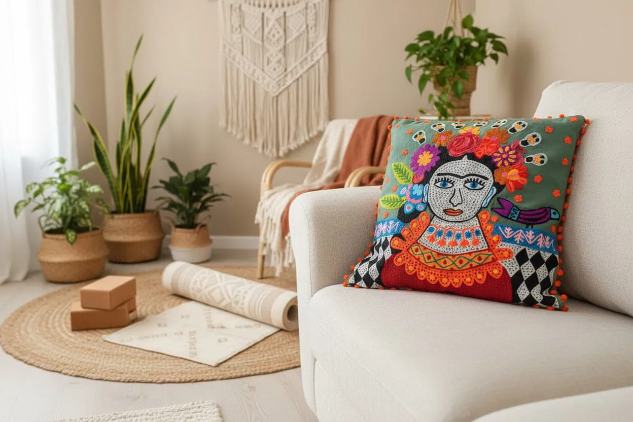 Wunderschöne Kissenbezüge mit feinen Frida Kahlo Stickereien.