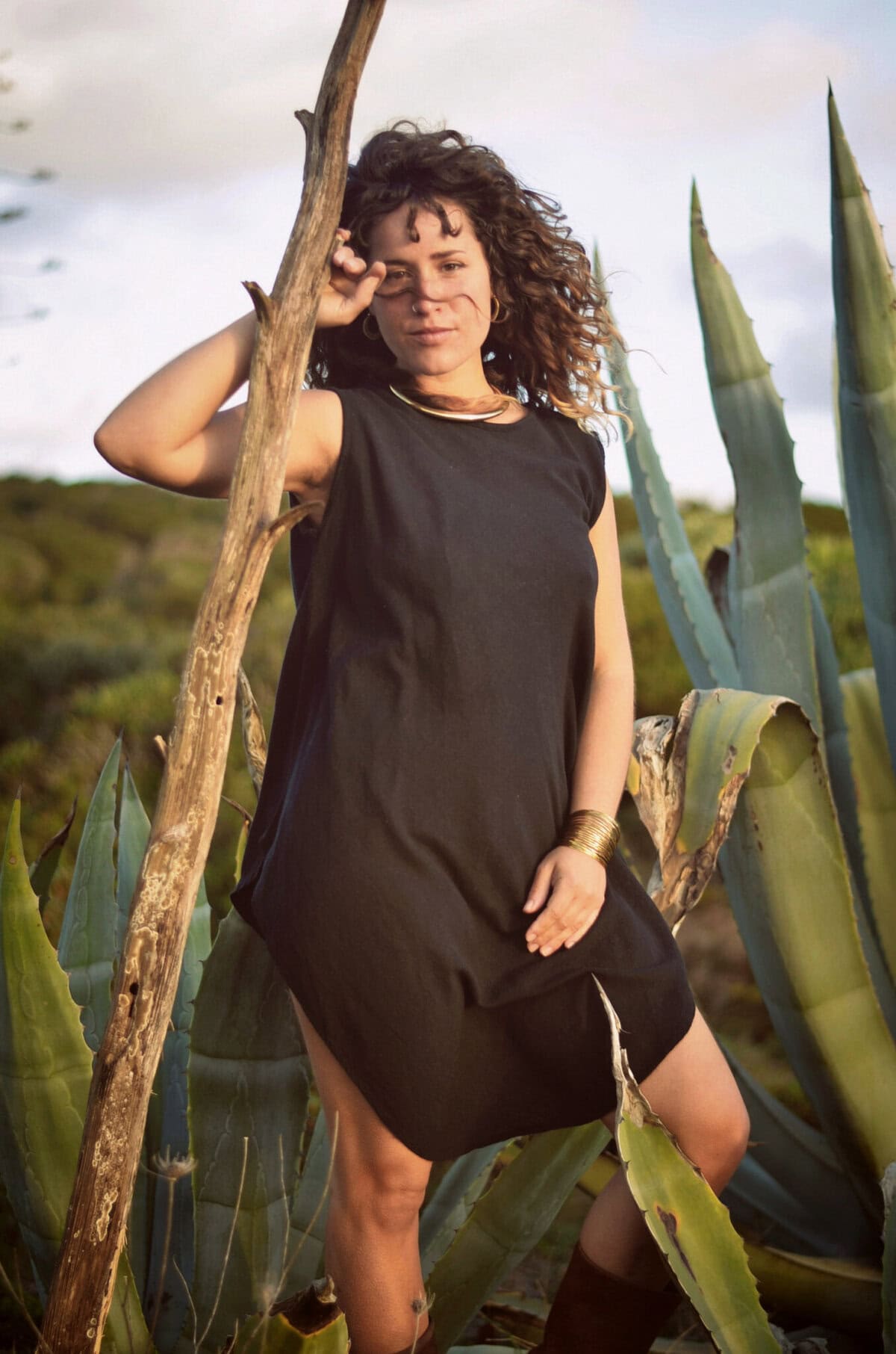 Ein schlichtes Kleid aus naturbelassener Baumwolle gefertigt. Die Baumwolle wurde nicht nachbehandelt und von Hand gefertigt. Dadurch entsteht der natürliche Style des Kleides.