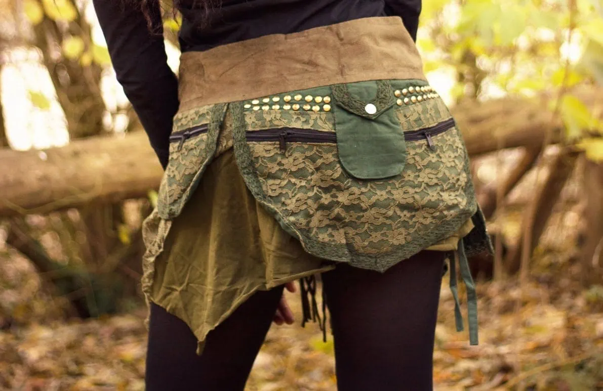 Während die vier kleinen Seitentaschen, die praktisch übereinander liegen, den Rock zum perfekten Festival & Party Begleiter machen.