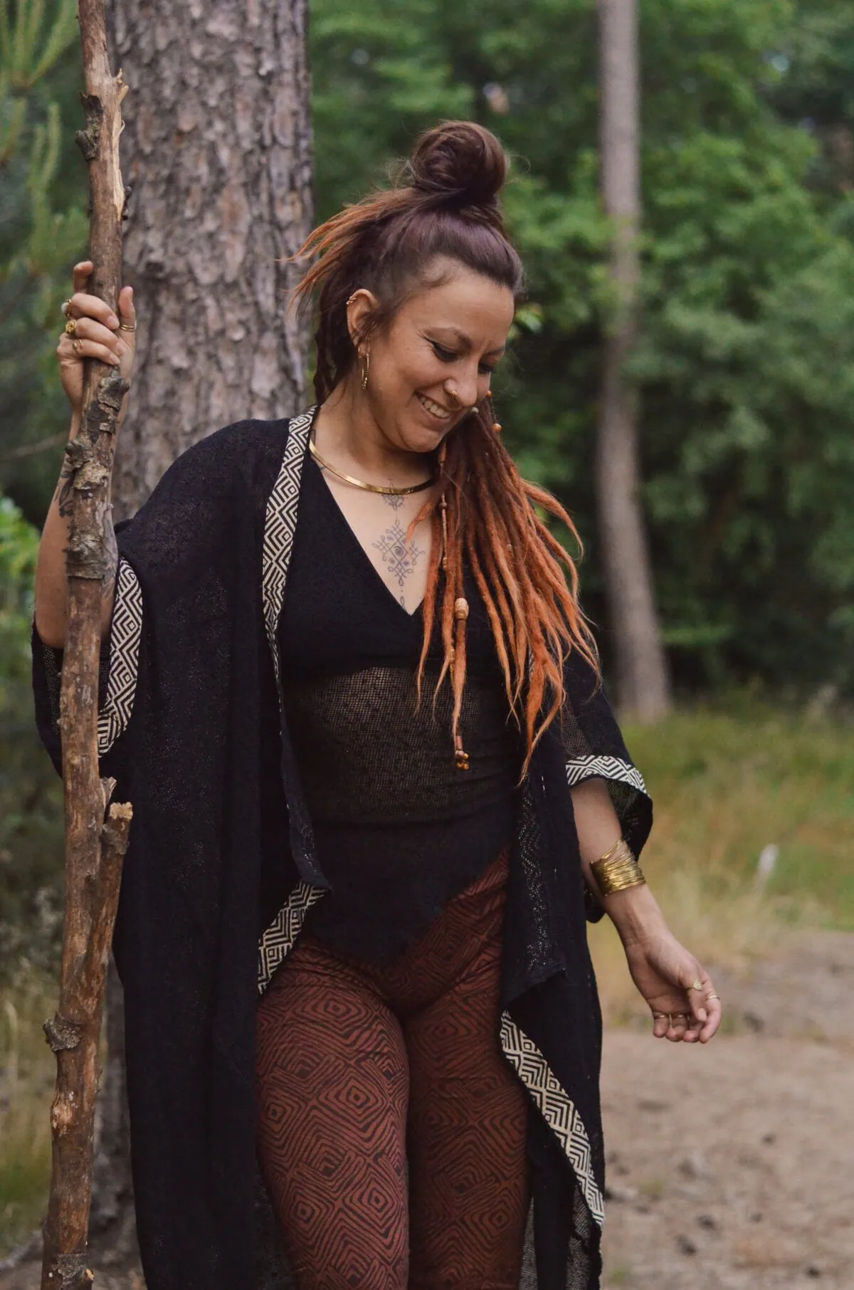 Die Leggings „Chill dich“ hat ihren Namen verdient, denn sie chillt für ihr Leben gern und lässt auch dich chillen, weil du dir um dein Outfit mit der Leggings keine Gedanken machen brauchst. Mit dem feinen Ethno Muster ist sie ein Blickfang für sich, der sich toll zu erdigen Farben, aber auch zu schwarz und weiß kombinieren lässt.
