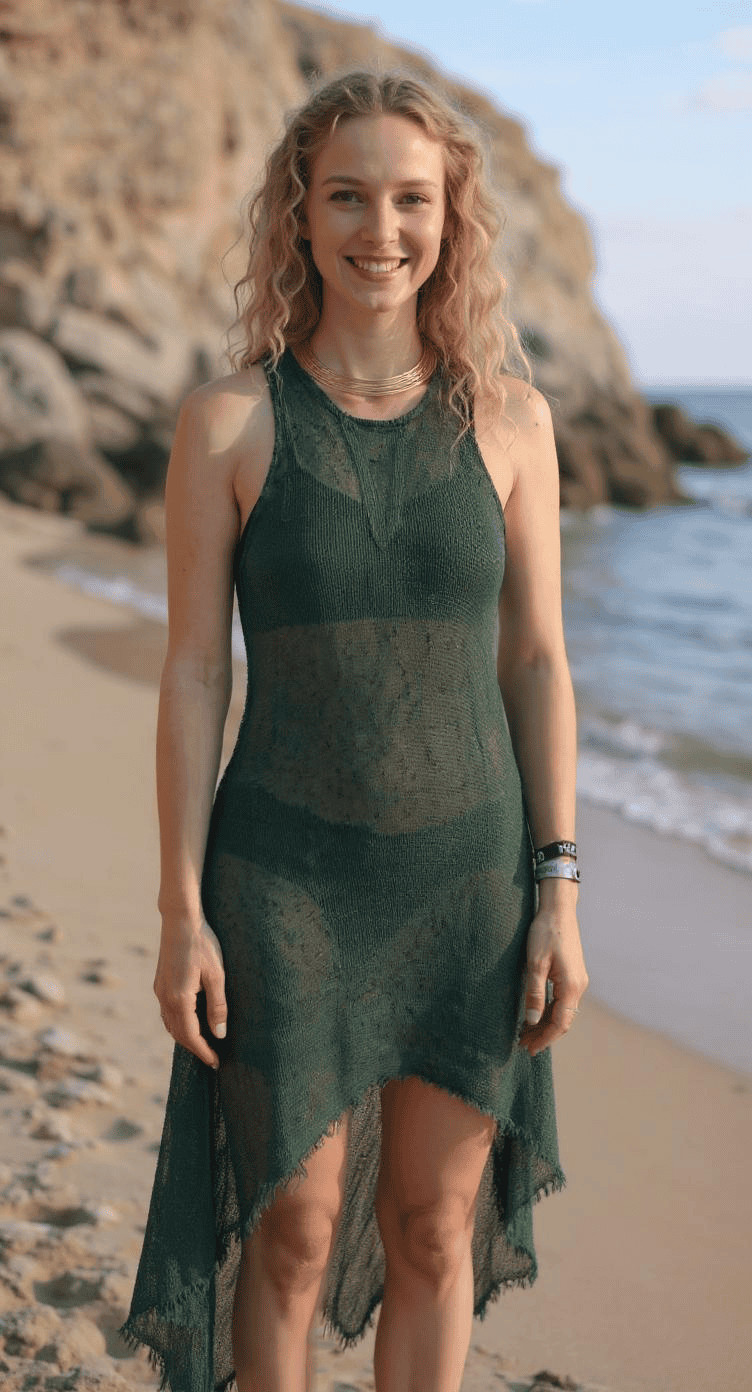 Ein pfiffiges Meshkleid aus natürlicher Baumwolle gefertigt.