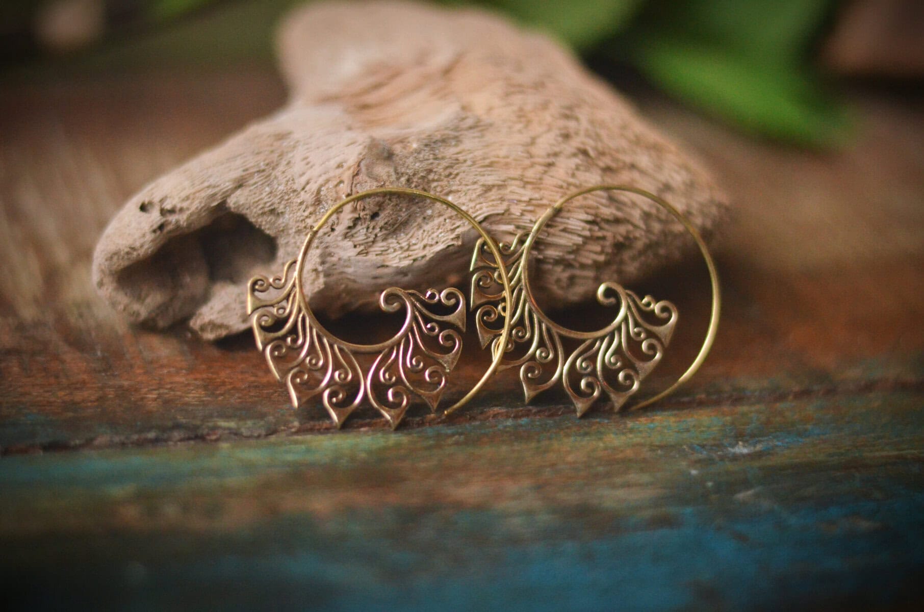 Verspielte Creolen Ohrringe mit geschnörkeltem Paisley Muster