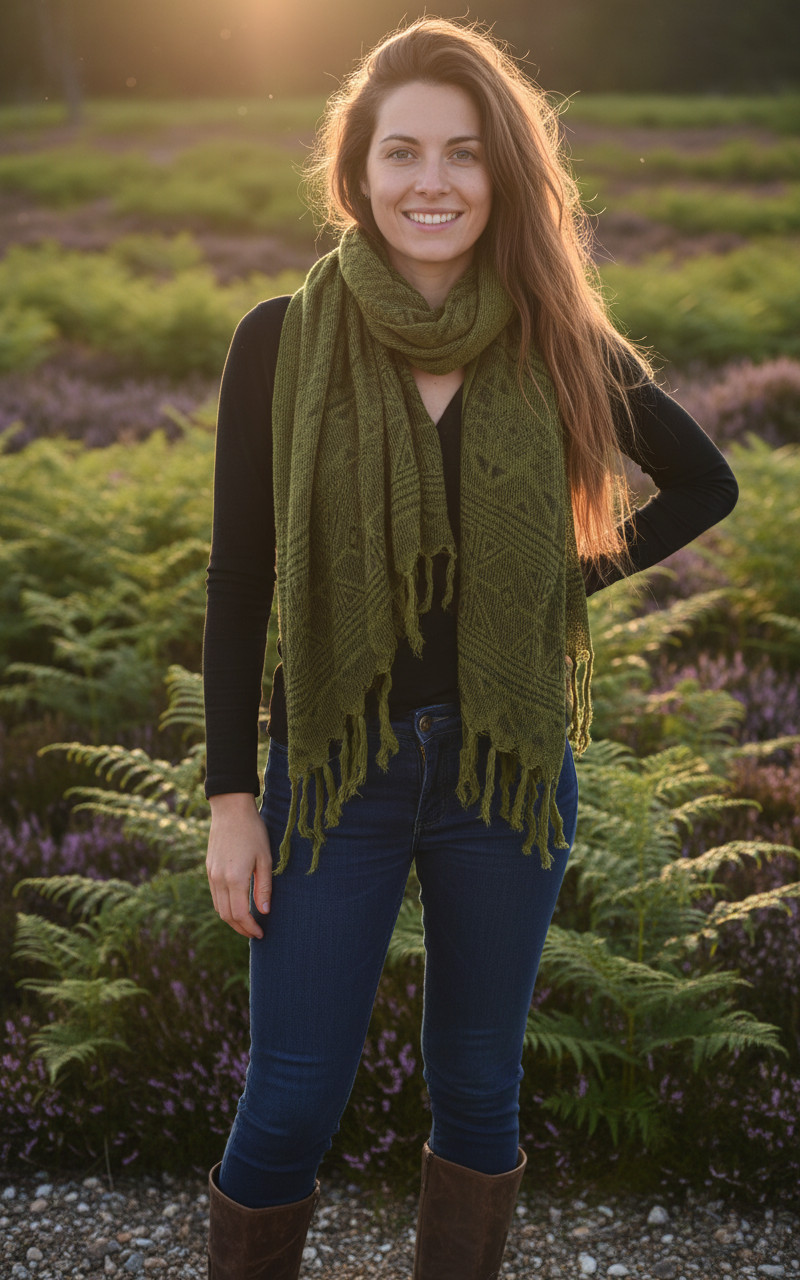 Der Schal kann mit seiner Größe wunderbar als Poncho und Überwurf getragen werden.