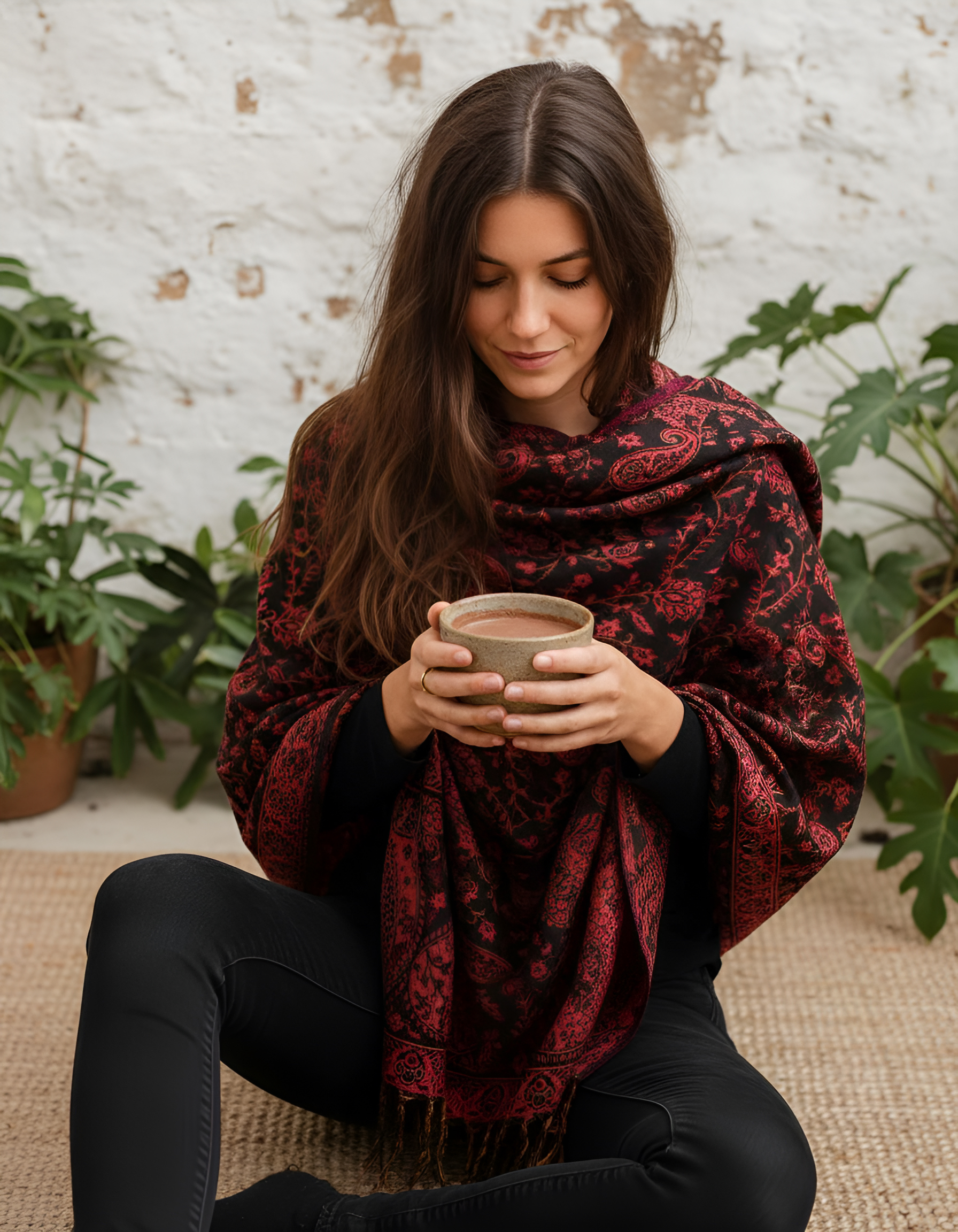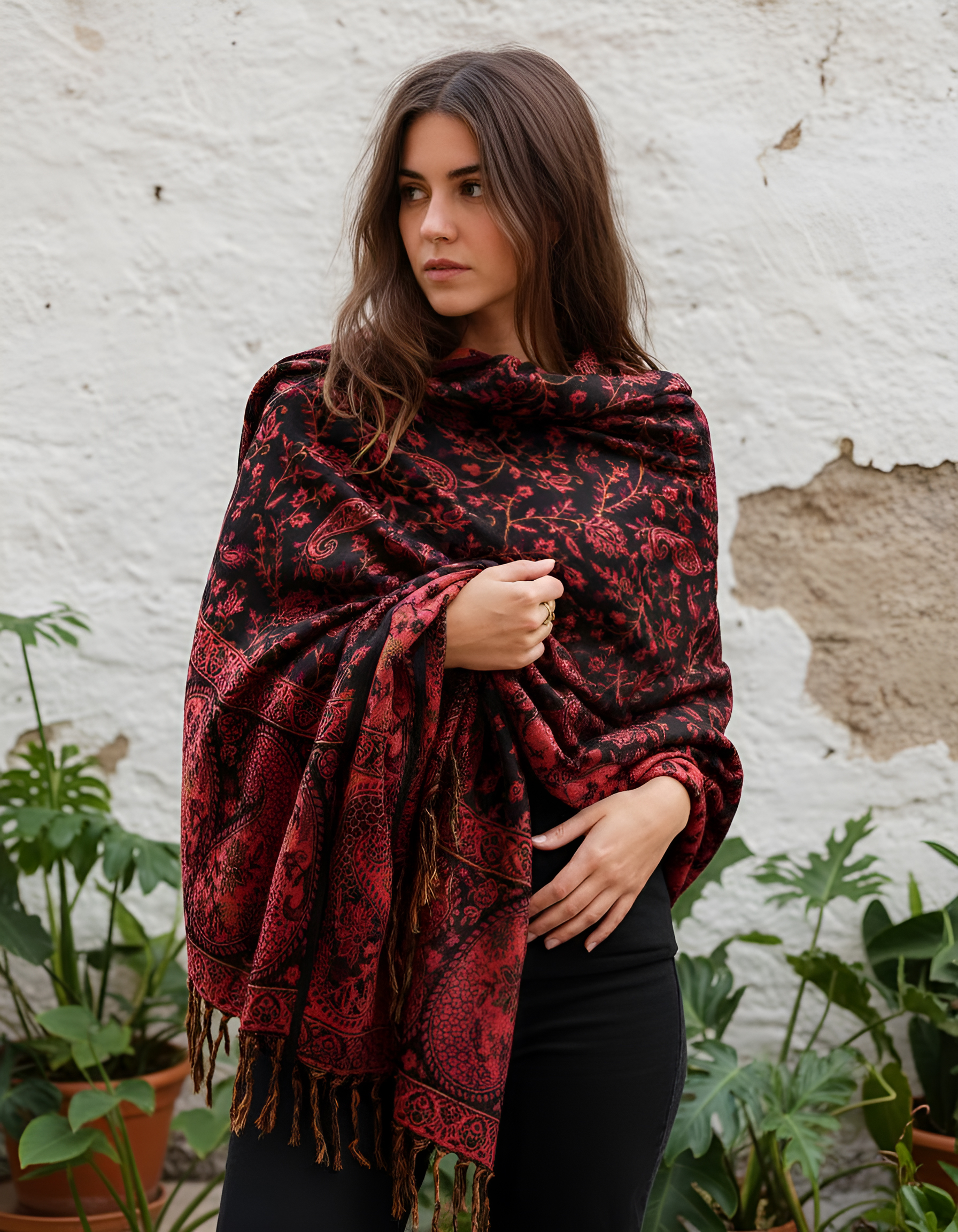 Der weiche Paisley Boho Schal lässt allerlei Trage-Varianten zu.