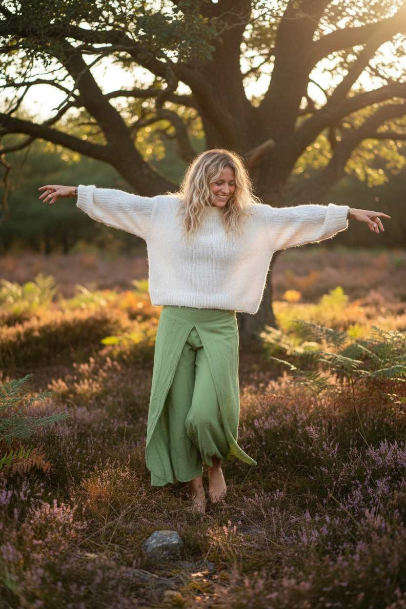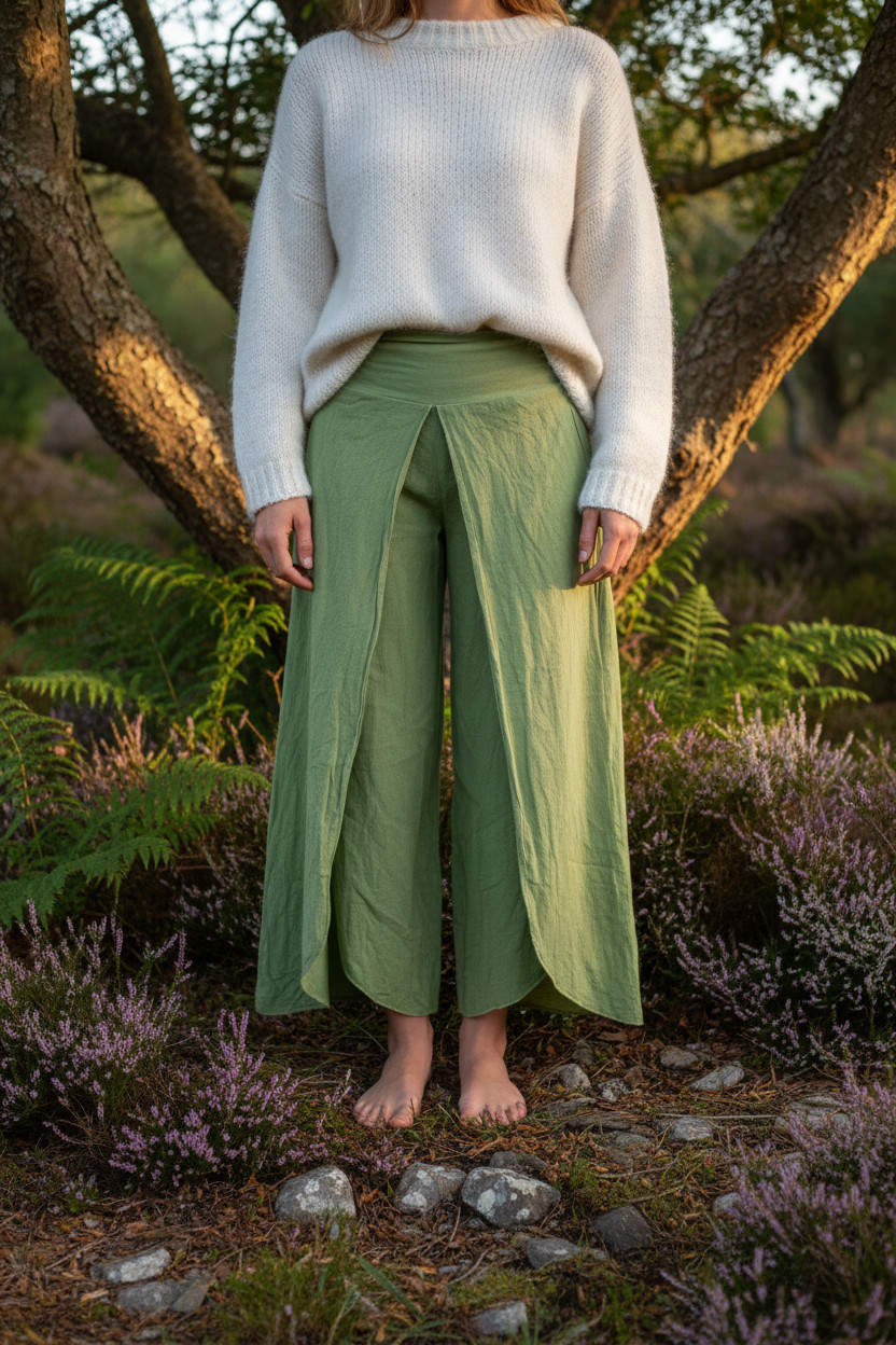 Die Hose ist eine super bequeme Chillhose für den Sommer und die Übergangzeit. Die Palazzo Hose ist aus 100% Roh-Baumwolle gefertigt. Dadurch hat sie einen natürlichen Boho Look und eine feste Stoffstruktur. Die Schlitze an den Seiten machen die Hose nicht nur zu einem Hingucker, sondern macht sie super bequem für heiße Tage, den Urlaub und Festivals. Denn auf dem Floor wirbelt sie mit dir im Wind und lässt dir eine Menge Beinfreiheit, die du auch beim Yoga oder beim Reisen zu schätzen wissen wirst.