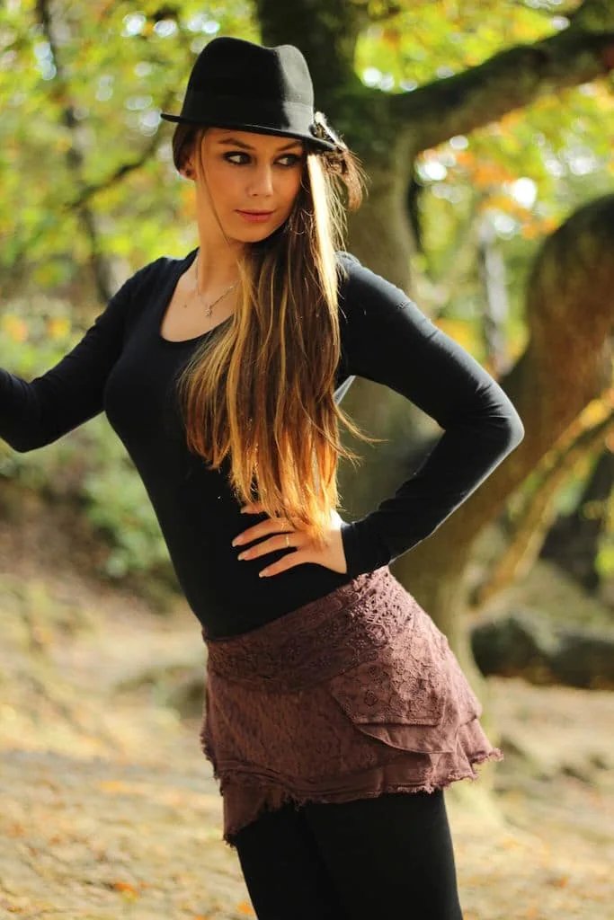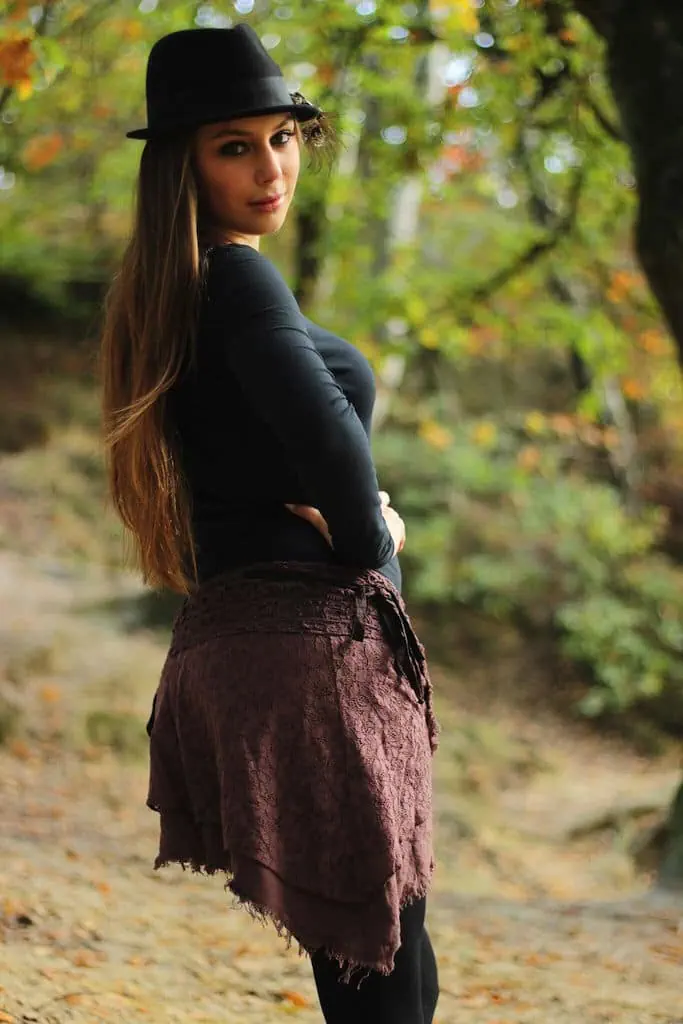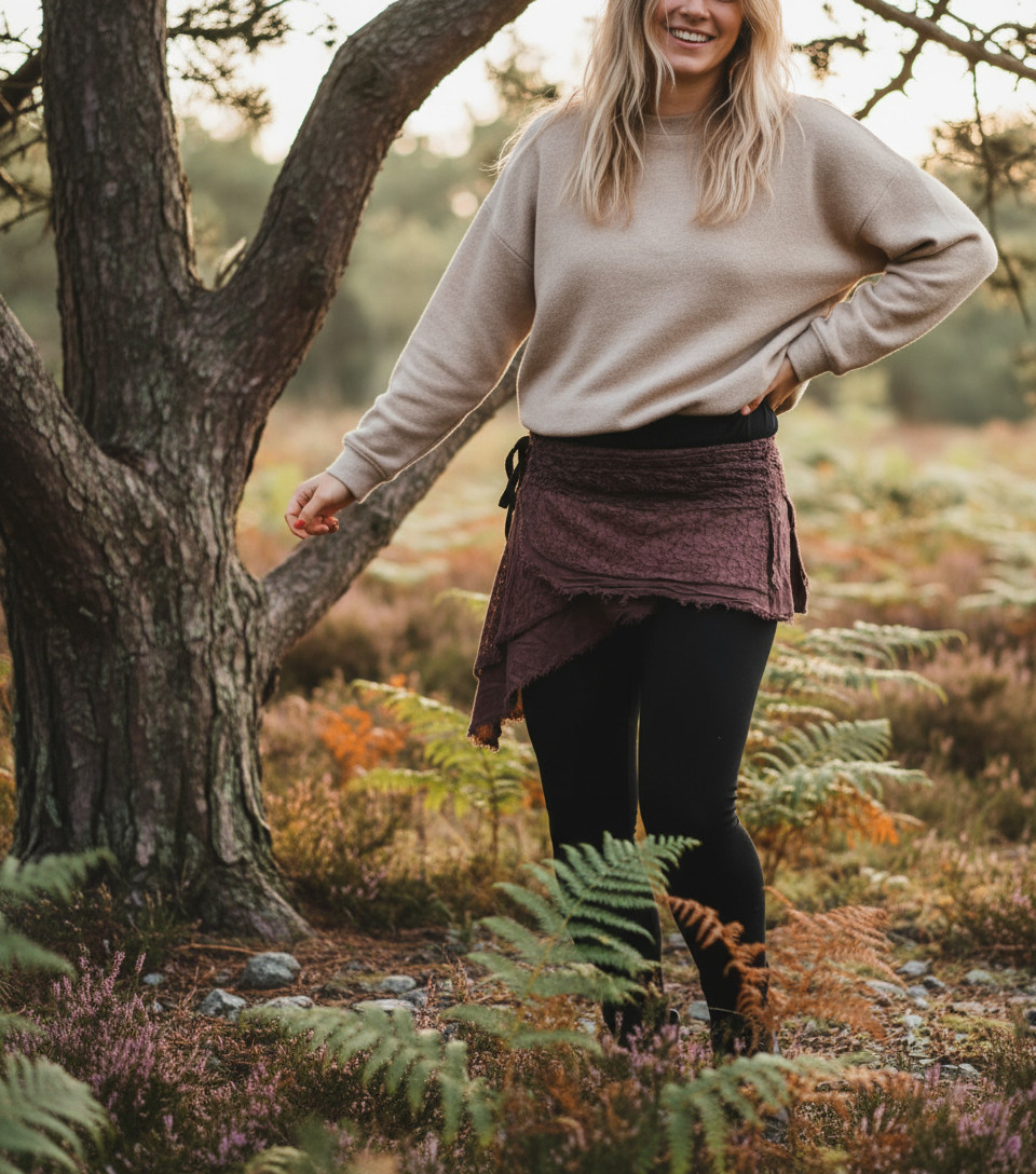 Verspielter Zipfelrock in natürlichem rustikalem Look.