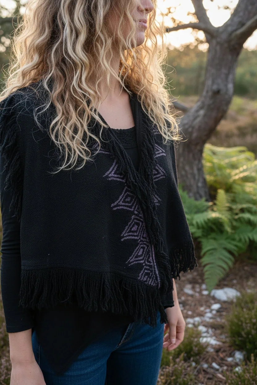 Diese Weste ist nicht einfach ein Kleidungsstück – sie ist ein Lebensgefühl. “Desert Spirit” begleitet dich durch Sonnenuntergänge, über staubige Festivalpfade, durch Wälder und freie Gedanken. Sie umhüllt dich leicht wie der Wind und erinnert dich daran, dass du verbunden bist: mit der Erde, mit dir selbst und mit dem Moment.
