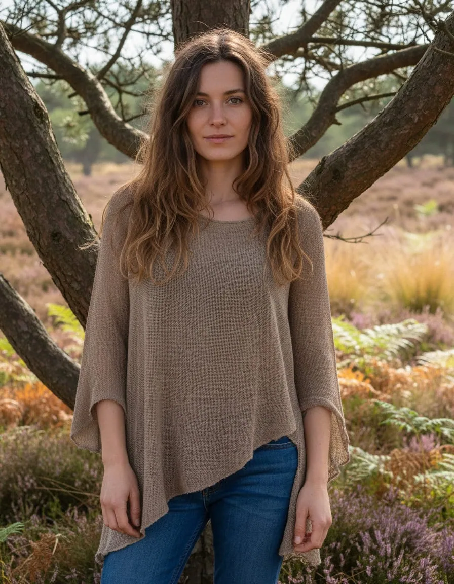 Mit seinem luftigen Netzstoff und dem natürlichen Look ist er perfekt für die warmen Tage des Jahres und lässt sich wunderbar im Lagen-Look kombinieren. Ob über einem einfachen Top oder als Highlight über einem Kleid – dieser Zipfel-Pullover setzt stets ein stylisches Statement.