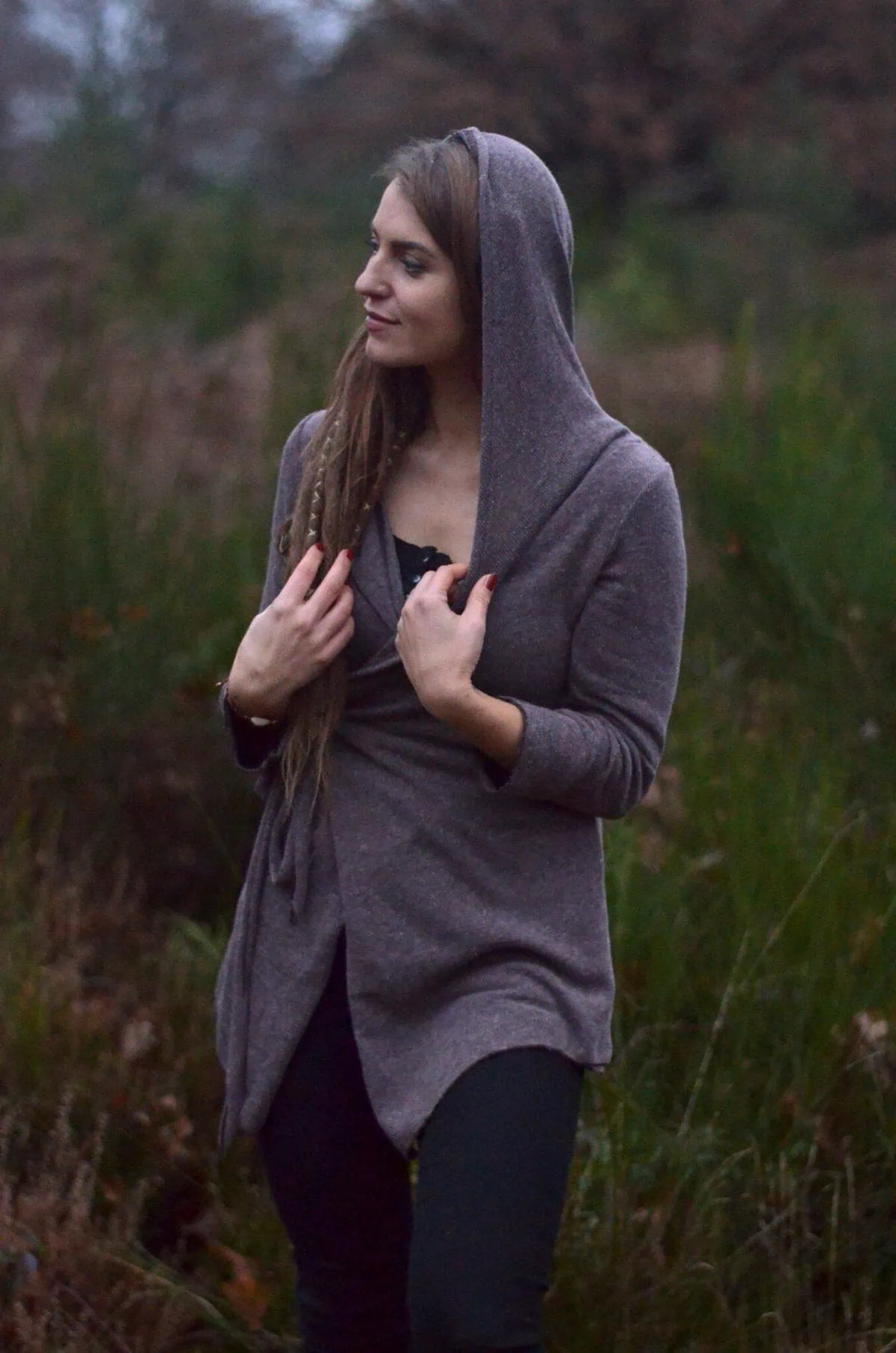 Wunderschöne, bequeme Zipfelweste im verspielten Lagenlook. Die Weste lässt allerlei Tragevarianten zu. Über die Schnüre kannst du die Jacke unterschiedlich verschließen, so entstehen schöne Lagenlooks.