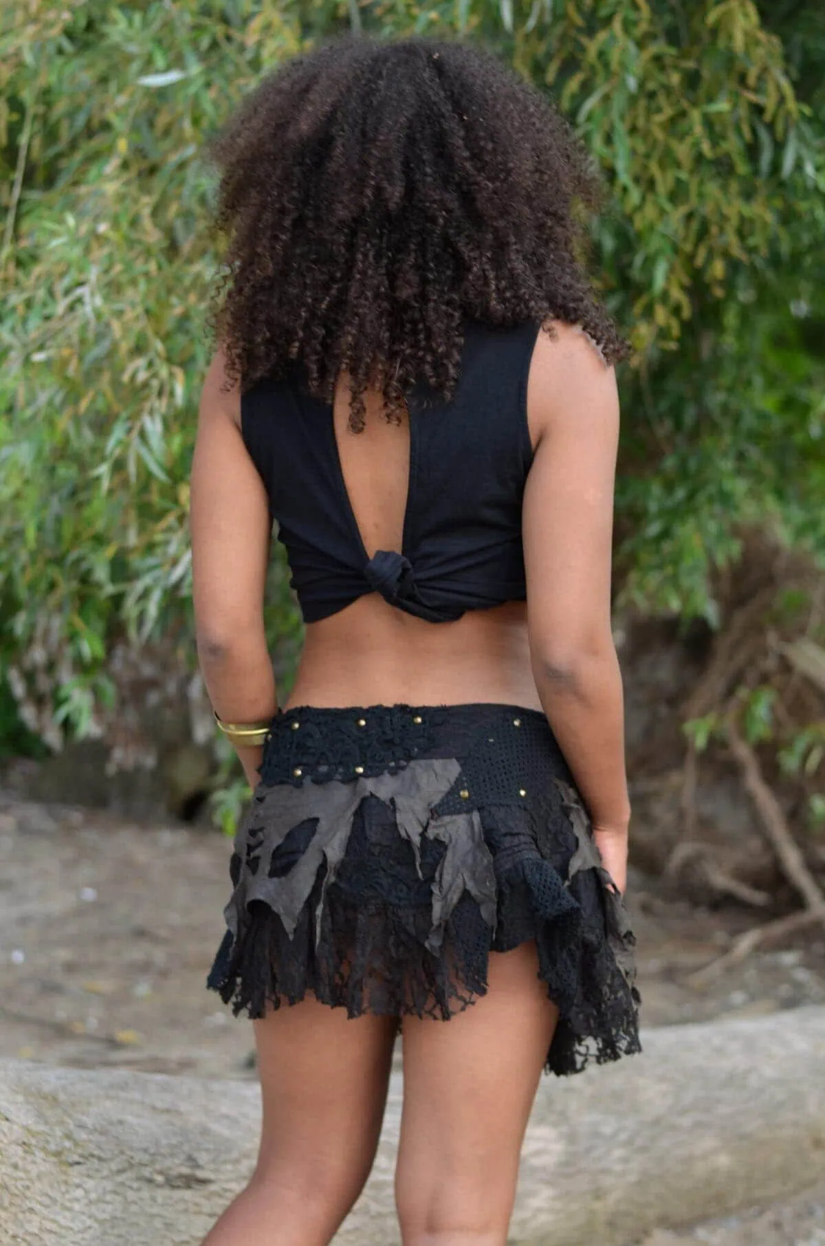 Ein ausgefallener Alltags- und Festivalbegleiter. Der Rock ist aus einem hochwertigen Materialmix aus Baumwolle, Spitze und Kunstwildleder.