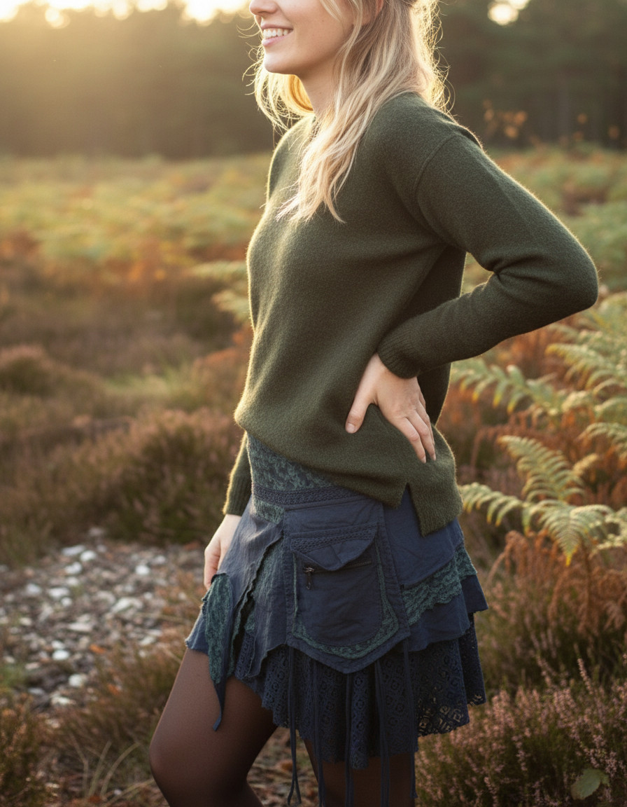 Du kannst den Rock auch toll als Cacheur zu Leggins und anderen Röcken kombinieren.